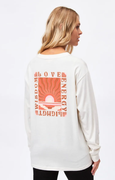 La remera Rising Long Tee de manga larga es oversize y tiene una estampa artística en espalda y delantero.